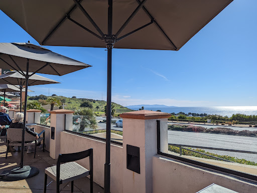 Hillside with spectacular view of the Pacific in a prime location. Largest and best outside seating with a view Ive ever seen at a Starbucks. Beats some of the finest restaurants!
