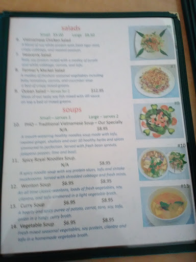 Really like this vegan restaurant. I always get the Pho, and spring rolls. Staff is always nice and really try their best to get it right. They are willing to go the extra mile to make you happy. Plenty of free parking. Not a fancy place but we usually do a lot of takeout. Check in on Yelp to receive a free kettle of hot tea.