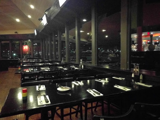 I went here for a birthday dinner for myself and my friend. We were four hungry guys ready to eat all the meat we could. We came on a Tuesday and it wasnt too busy but the majority of the tables were filled. The restaurant is very nice and has a very nice view overlooking the water. We started out with the salad bar which was okay. There were a few items Ive never tried but the majority I didnt care for too much, it seemed like it had been sitting there for a while. The waitress brought us some garlic bread with very yummy dipping sauce. It seems like they try to fill you up on all the sides and bread so you dont eat too much meat. But we werent fooled, we knew better! At first the "meat men" came by the tables very slowly. Wed have to wait about 5-10 minutes between meet servings. There were only about 2-3 meat men out on the floor at a time. But when they did come it was delicious! All of the meat was cooked very well and very flavorful. My favorites were the pepper steak, sausage, and chicken legs. The less crowded the place got the more we saw the meat man. We also ordered the traditional Sangria which was more ice than drink but was still very good. This was my first Brazilian BBQ experience and it was a pretty good one.