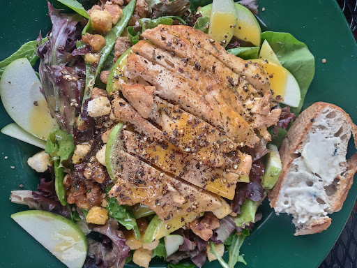 The food was amazing. Fresh and it came out of the kitchen quickly. I had a grilled chicken sandwich on garlic rosemary bread. The sandwich had chicken, lettuce, tomato, grilled onions, and avocado. I also ordered the iced Chai tea that was also very delicious!