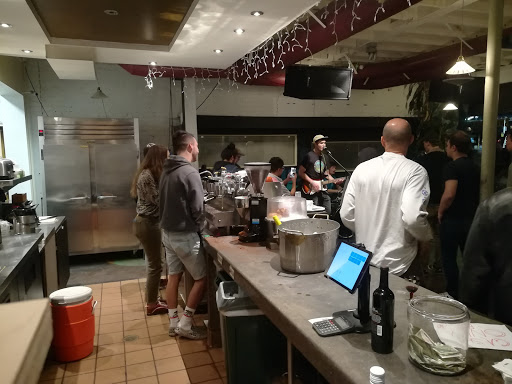 Cool cafe/bar that opens til late (midnight on weekends). The atmosphere is very rock and they have live music on weekends, not sure how often. The place is right next to the caltrain tracks so it does get noisy sometimes, but its otherwise a nice place to study or hang out. Coffee was good, they also sell baguettes, they actually have like a subscription plan for it..but Ive never tried their bread.