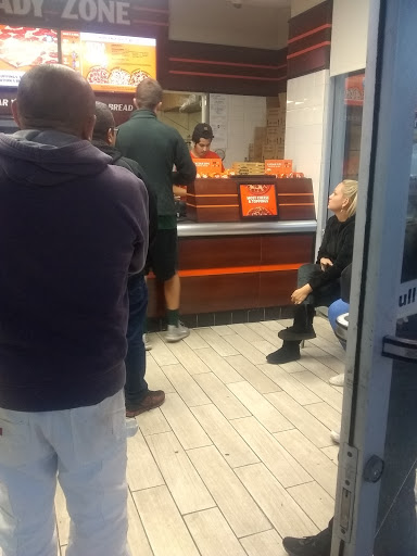 Pretty good pizza, but its hot in there and these workers look like they hate us. Greasy also, but some workers there are great.
