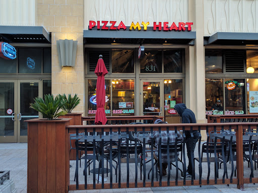 Pizza My Heart is a pizza chain in northern California. The Redwood City location is in a pedestrian strip downtown. Their pizzas are fairly standard (crust, toppings, etc.), with the occasional unusual special. For a chain, the pizza tastes pretty good, but its nothing to write home about. They do sell by the slice, and prices are reasonably good. The salads are... ok. Best to stick with pizza.