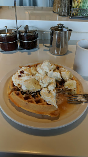 Visited this restaurant twice in two weeks. First time the waiter took a long time to get us coffee. The meal itself was good but not excellent. Prices are commensurate to the vicinity. The second trip (today) coffee was within seconds of our seating. Had a craving for waffles and I love blueberries, so thats what I ordered with a side of 2 eggs over medium. Eggs were perfect. Waffle was fine, and the blueberry preserves were amazing. This mornings trip elevated what would have been 3-stars to 4.