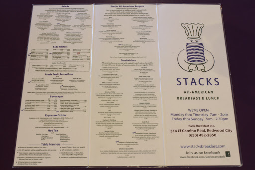 Stacks should remember one of lifes most important rules: First impressions mean everything. I understand that thwy dont have to honor special request but they dont have to be ruse about it either. It was my first time going and my pastor asked for his waffle to be cut and the waiter was like no they arent going to do it I told you that last time. Hes blind people even though I have no problem doing it for him, is 5 seconds really going to hurt business? Dont think ill be coming back here Dennys is better lol