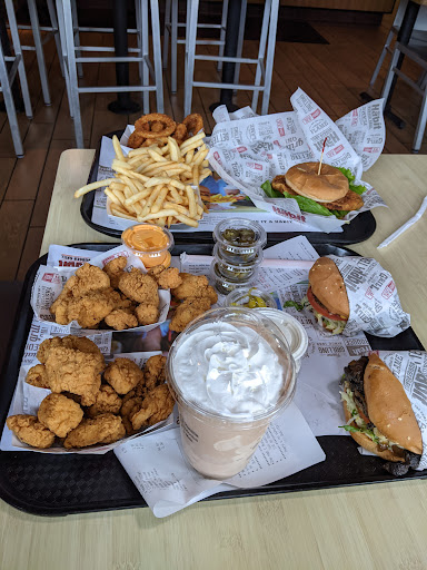 Great burger joint with other options (veggie burgers, salads, chicken sandwiches) with stellar service. Placed a to go order and got halfway home when we realized they forgot our fries. Went back and manager gave us extra, plus coupons for free burgers and said they will work to correct the error to double check so it doesnt happen again. Highly recommended even with a small blip.