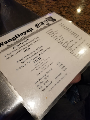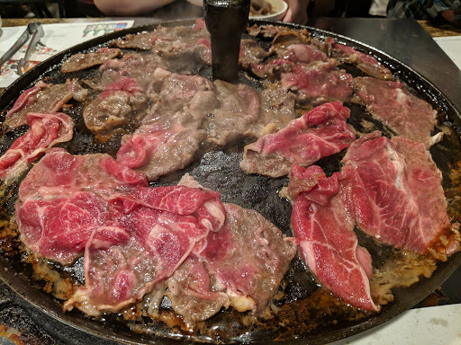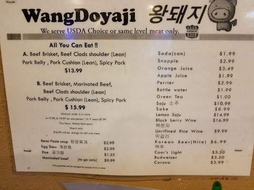 All you can eat for 12.99$ or 14.99, depending on the choices youd make. Drinks are fairly priced and the meats are pretty good. As an extra you get a bowl of seasoned lettuce, kimchi, onions & green peppers, some garlic and sauce, all with free refils. Be ready to put ALL of your cloths in the washer after you sit there for 2 minutes as the ventilation lame... I was putting my name in the waiting list and took a sit outside (they have waiting chairs outside too), but they never checked on us and gave other ppl (2 groups) our spot, saying "I called your name about a minute ago" - why dont you check outside if you have waiting chairs especially for that over there.... Anyway, you wont leave hungry.