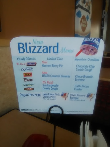 Ive been here twice, once inside and once through the drive through. This specific location always comes through with our orders and they show great consistency, last week I went to DQ in Redlands and after leaving the place I realized they forgot all the extras that were supposed to come with my blizzard. I was so disappointed. This DQ hasnt seemed to fail me.