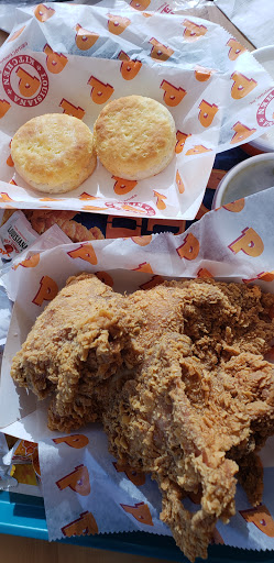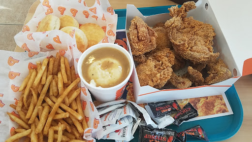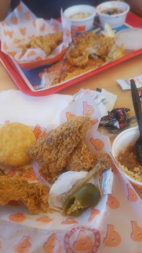 Very clean nice place to eat in the chicken is awesome always hot and fresh good place to get great chicken fast I always get honey with my biscuits very good