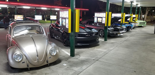 The service here is pretty slow for fast food. I know its part of the gimmick, but Im honestly not a fan. The food is super junky, even for fast food its pretty bad on the calories and sugar content. Not really a fan, but I will say I LOVE their onion rings. I go here every once in awhile just because I want some onion rings.
