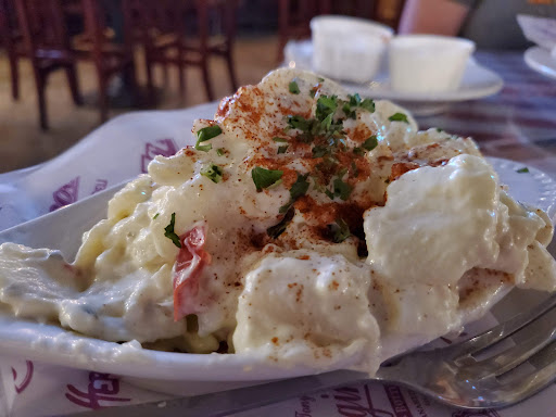 I recently came by this restaurant for a work party. The menu seemed a bit too large and it seemed like the items overlapped a lot. I ordered a sandwich and received a large amount of french fries. They seem like the curly type that you would find at an Arbys restaurant. I sat on the patio and there were some outdoor heaters which helped to made it feel not so cold. It would be nice to have a barrier to prevent the cold air from coming in to the patio area. As a large group it was very disorganized to present the orders and there were several items that were given to the wrong people. Overall, this was just and alright place and I dont know if there was anything that would lead me to come back... Edit: 11/3/16 - So I came back here and found they use the glass Heinz bottles. From my understanding, Heinz discontinued making these as restaurants were refilling them with off brand. Sooooo this tells me that is what this restaurant is doing. Supposedly the new Heinz bottles are more sanitary as once they are emptied they cannot be refilled. Just an FYI