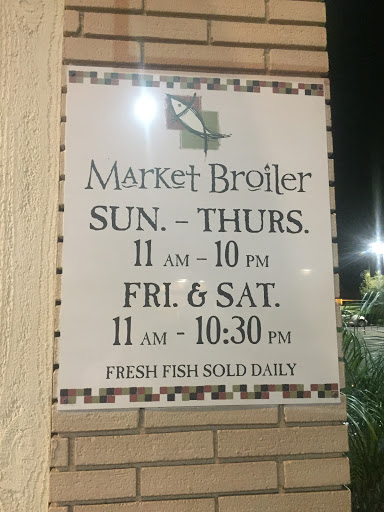 My wife and I went to the Market Broiler and had a real nice time. We went on a Saturday night before the evening rush. We had about a five minute wait before we got our table. Our server was very nice and attentive. She brought us fresh sourdough bread from the oven. Yummy.. I had fish tacos and my wife had fried oysters. She love her food. I did not know that my tacos were Tempura. My server said I could keep the old tacos and bring them home and she brought me grilled tacos. The were ok, need seasoning, Lawrys Seasond Salt to be the bomb. None the less, I had a good time. I will order something else next time.