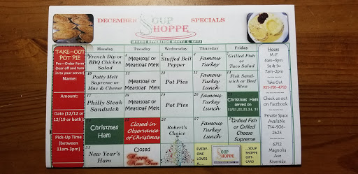 My father was eating at the Soup Shoppe when he was a Mail Man in the 1970s. Ive been eating there ever since. Sandwiches and soup, Daily specials, and more.