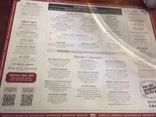 The building is impressive! Its beautiful and more eye-catching than the typical Spaghetti Factory. Right away, I could tell (by the smell) that the building was old. My server explained that it was an old orange packing warehouse! Awesome! Of course, there were the usual varied chandeliers and train car (like all the Spaghetti Factories). The food was good but the beer selection was poor. I tried two samples. Both were, um, not to my liking. The bread was not up to typical Spaghetti Factory standards (dry and crumbly). We ordered another loaf - same thing. The service was excellent!
