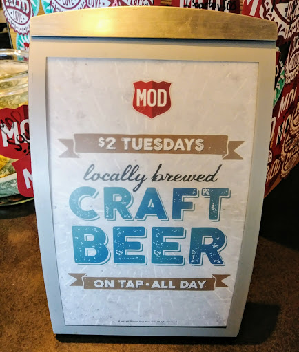 Great experience at Mod Pizza! The atmosphere is friendly at the counter The pizza is a make your own or choose one from the menu I liked the pizza better than Blaze. The pizza is very good There were enough ingredients on the pizza instead of asking for more. I didnt feel like I was part of an assembly line only to be pushed along. To top everything off there are milk shakes and rootbeer floats on the menu! ....and beer and wine.