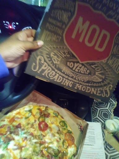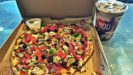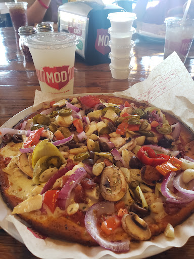 I love MOD pizza. It is like a deli for pizza. You tell them what to put on it, as they Pake it in front of you. Then pop it in the oven. There is no limit to how much you can put on the pizza it is the same price.