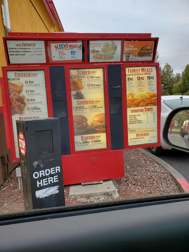 1st visit and not impressed with the speed of service or quality of service. Sat stuck in the drive thru for 10 minutes before we even got to the order board - it was obvious that it was the service, not those in front of us because everyone had the same exasperated look on their faces as they waited to be helped. Then, when we finally get to the order board, a girl asks us to wait, and then a guy faintly asked that we pull up to the window. We were confused, since everyone else ordered at the board. Once we get to the window, a young kid who was quite clearly stoned off his ass then attempts to take our order. He took forever to take just ONE meal, so then, after finding out they only had spicy tenders, we left. Will not be back.