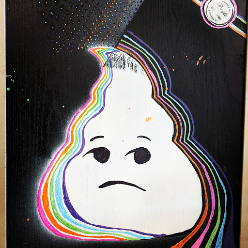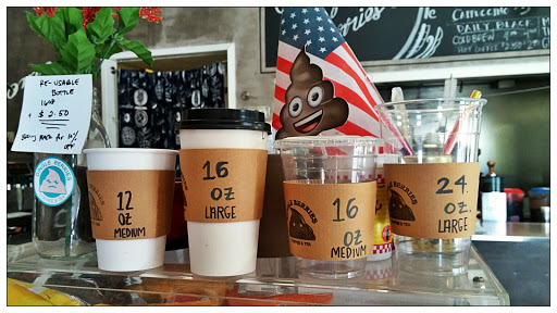 Its a really small, but cute cafe. They have really interesting names for their delicious drinks. They offer samples of some of their drinks for newcomers, which is a huge plus. Its kind a of hard to find the place because they do not have a sign. Look for the poop. Also, its really hot inside, so I would not recommend hanging out inside unless you are next to their single fan.