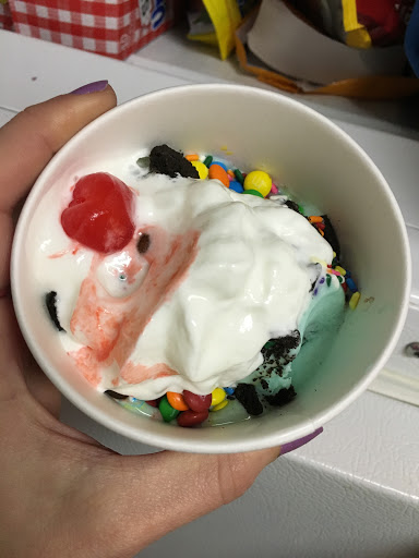 I took my son her to get him an ice cream sundae for his birthday. He got a two scoop sundae with three toppings. The scoops were ridiculously small and I was charged 7 dollars. Ill be sticking to frozen yogurt from now on. My son was disappointed. Rip off!