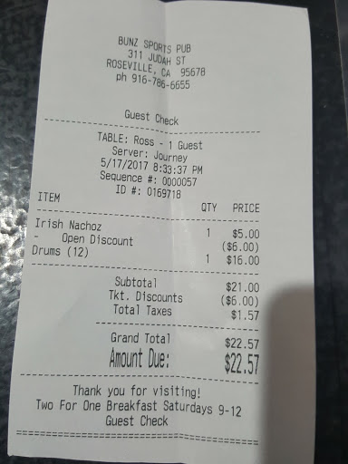If you want to spend a lot of money go to Bunz... on the other hand if you want to get a good deal go to Mandangos Sports Bar & Grill 106 N Sunrise Ave Roseville, CA Its just over the freeway and they actually let you know how much their beer is. Ive been going to Bunz for over 20 years. It has now hit a new low. Their beer prices are so high that they dont publish them. Its a secret, until you get the BILL.... Anyway dont go to bunz, go to Mandangos... you will be much happier.....