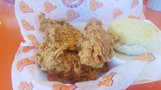 Friendly staff with a clean restaurant. We ordered a 3pc dinner, shrimp and 2pc spicy dinner. For the dinnera we got sides of mac and cheese which is always tasty and comes out hot. The biscuits are great with a buttery/ salty top. 3-stars for over cooked spicy chicken breast. It was under the heat lamps too long and came dried out. Not a deal breaker, and well be back.