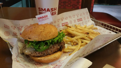 Pushy counterperson demanding order. This is the first visit to this location, second visit to a smash burger in 7 months so Im not at all familiar with the menu. I grabbed a menu at the door per instructions on the wall. There was no line so I wanted a minute to stand and read the menu over, check out combos, descriptions and sizes etc. The gal behind the counter with the poor attitude asked my order 6 times in under 2 minutes. RUDE. I asked what the difference was between sweet potato fries and the smashed sweet potato fries, which seemed to annoy her, from rolling her eyes and deepening frown. She finally answered Smashed is the signature fries, its their trademark, its what they are know for. Well, thats completely not telling me whats so special about it but hell, I ordered it with a sure, sounds damned tasty since its a trademark. Thick Sweet potato fries, FRIED to a crispy outside tender inside then soaked in oil and sprinkled with what is suppose to be garlic and green specks. Disgusting. Im sure at concept it was done right and delicious but this oil slick in a funny cut soda cup with white and green specks was not at all edible. The smash burger I ordered without onions, only mayo was soaked with a yellow bitter liquid to the point of the bun was not able to soak it anymore so it fell apart and the wrapper leaked out into the bag and through the bag onto my seat. Thanks! Without the wet mush bun and after ditching the red onions I didnt want, I found the stingy paper thin tomatoes and pickles made the burger edible. I was up charged for the change to cheddar cheese but it wasnt on the burger, unless it was part of the liquified bun. My husband ate the Baja burger and the shoestring fries. He said it was as described but beyond sloppy. He wasnt sure why the mayo mustard smear was all over the bun and inner wrapper since this burger has only the guacamole listed. Without the mayo mustard stuff this would have been a good burger. The fries were crispy and not over salted. Best part of our to go order was the finding the very clean, fresh lemon wedges to squeeze and add into the Minutemaid fountain lemonade. Had I not been rushed at the counter, being the only customer waiting to order, I would have purchased more (regrettably Im sure) including milkshakes instead of fountain drinks. 2 regular sized bugers, 2 fries and 2 large fountain drinks $25 plus. NOT WORTH IT.