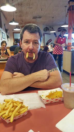 i really like the cheese slathering on the burger but it could have been a non frozen patty for a $5 burger, maybe something fresh and natural and it wouldve been the best burger Ive ever had. Still with that small complaint aside they were friendly and I left very full on a tasty burger I will definitely eat again