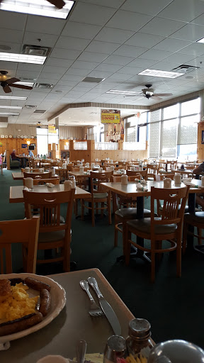 To start out with, the entry way and waiting area smelled like vomit. Sitting at your table, you feel like you are in a cafeteria. There is very little space because they packed the tables so close together ... mainly to get as many people in there as they could ... and make you uncomfortable. There are NO BOOTHS. Dont come here if you hate sitting uncomfortably during eating. The staff/service was very poor. Our server wasnt paying attention to anything and had VERY poor communication skills. A "basic" in serving ~ make sure your tables have refreshments. She didnt even do that. The food was poorly cooked, as if they have hired a cook with little to no experience. They Couldnt properly cook even the basics of breakfast - bacon and eggs (they were over cooked and burnt). This is a place for parents and their screaming kids, because that was what the place was filled with. The ONLY good part = the pancakes were good. So if that is all they can do right and you want pancakes .... go for it. But personally, I will never return here again.