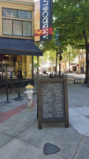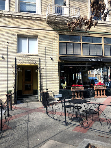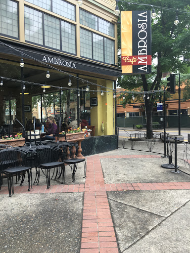Ambrosia is overall ok. I have found that their dishes are a "hit or miss". I have some favorites and I have also had some crappy food. I would recommend their "gorilla shake" and salmon sandwich (which they rarely have). The food is ok, what has made it a staple for Capitol staffers and state workers is the location...