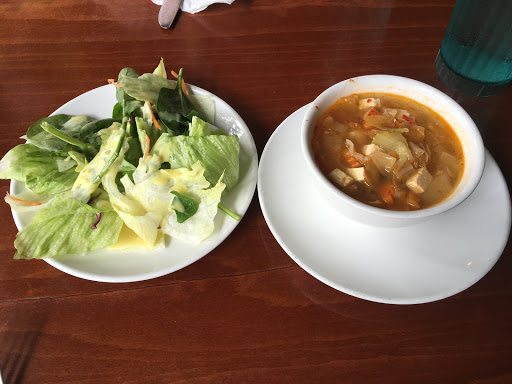 We were on our Sunday walk and stop in for lunch. The food and service was very good. The menu and price was so Wrong. It was After we ordered we were told the menu did Not reflect what we would get, the price was more as if dinner and the extra of salad and soup that was on menu we would not get. So there was no tip. And sorry for the food was very good.
