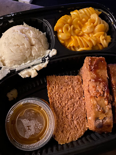 Meatloaf, chicken, mashed taters and Mac n cheese. Very tasty stuff. Quick service Prices is decent Nothing to complain about currently