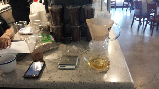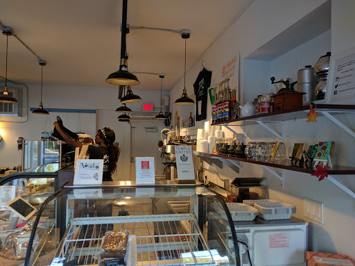 This is a new place, but I have already been here three or four times so far,. I think this may become my "regular" coffee shop because it combines all of the things that I like in a local coffee shop. It has good coffee, without the crowds and noise of places like Temple or Old Soul (which are also on my list as good places to go). While they use Temple beans, I think they may be a bit cheaper than Temple. They also have what appears to be a great selection of cold-case food, with both vegan and carnivorous options. The staff is friendly and seem invested in the shop and their customers. I also really like the fact that one of the walls is covered in windows, giving it plenty of natural light. Plus they have full-sized tables with convenient outlets for those of us who use coffee shops as another place to get some work done when we need to get out of the house! So all in all, stop by and support your new local coffee shop!