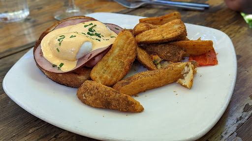 Let me start with the decor, its awesome. The space is open and inviting. It has a large bar, and both indoor and outdoor lounge style areas w/ couches chairs, tables, etc. A real pleasant waiting spot if tables are full :) My party of 3 arrived on a Saturday right around Noon, and were seated outside upon request. They initially didnt offer it outside because the tables were currently in the sun, but we didnt really mind and once asked for they were quick to comply. Since it was Saturday, that means it was Brunch time. So we got to order from the Brunch Menu. The following items were ordered: Trio of Fries -These were very good, all 3 of them. Crispy and full of flavor. My personal favorite was the Sweet Potato, but the other 2 options were also good. And you got a ton of Fries, just like you should for a fry appetizer. Chicken & Waffles -Full of flavor. The Chicken was crispy and moist. The waffle was well cooked and the maple pecan butter was full of flavor. And to top it off the gravy was creamy and peppery. Seared Ahi Tuna Sala -My wife got this and she enjoyed the dish. She did report that it was a bit salty in some spots though, but she ate most of it, so Im not dropping the score. Kids Grilled Cheese & Tomato Soup -My daughter got these, and her reports were pretty positive. She ate the whole grilled cheese, which is kind of a rarity. The Price for everything was fair in my opinion as well. Id definitely return here.
