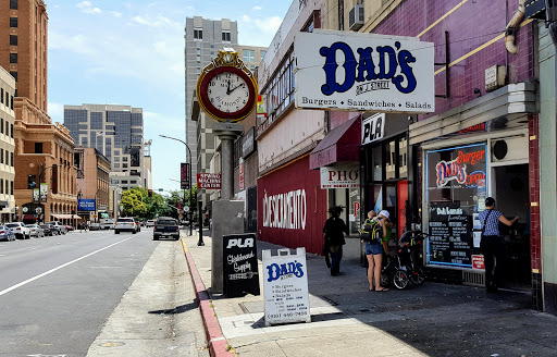 On a recent business trip to Sacramento, I had the fortune to eat at Dads twice during the trip. First of all, their burgers are absolutely fantastic. I enjoyed a bacon cheeseburger that was juicy, flavorful, and extremely reasonably priced. On my second time through, I had the chicken fingers and fries, which were crispy, juicy , and delicious. Highly recommended when youre in Sacramento.