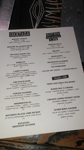 Bartenders really know their stuff. Great cocktails, great beer selection. Order the wings that have been introduced since it became Highwater. Really good and, finally, a different take on a tired area of bar food. TVs for sporting events but they dont kill the atmosphere. Back patio is cool. Great place.