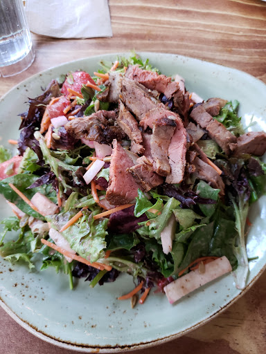 One of my favorite places for fairly inexpensive but seemingly good quality food. Would be great if I knew it was (so its probably not) organic veggies, but not many restaurants doing that yet for whatever reason. But still, always tastes fresh, good hot sandwiches and stuff, fast but not "fast food". Theres simply no excuse to eat pink slime burgers from a drive through when you can be in and out of a place like this in 5 minutes for similar cost and way better quality. But the draw for me is the great salads you can get topped with your choice of meats if you like.