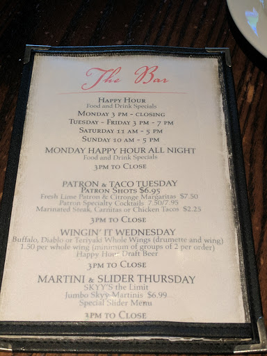 my family and i went here last night for my birthday. the waitress was pushing expensive appetizers on us and then told us about a dinner special which my mother ended up ordering. the way it was described sounded all gourmet and tasty but in reality the pork chop you couldnt even cut through, the supposed garlic mashed potatoes had no garlic flavor, the supposed grilled asparagus were half cooked and flavorless, and there were 3 canned peaches with a spice that my mother couldnt identify for $28. that was a ripoff! the waitress forgot my grandfathers soup. my desert was supposed to be free and she didnt even comp that. the bread was hard as bricks and wasnt even warm. the bussers had to refill our drinks. the special should be listed on the menu so as a consumer i know what im spending or what im getting for what im spending. horrible restaurant. worst experience ever. never going back which is said because we really like the desert platter and asian chicken wraps while i have learned how to make them at home. not nice doing business with you! youve lost a family of customers! i suspect this place is also racist since the bussers are hispanic and were nicer than the server who was white. the servers name was Holly!