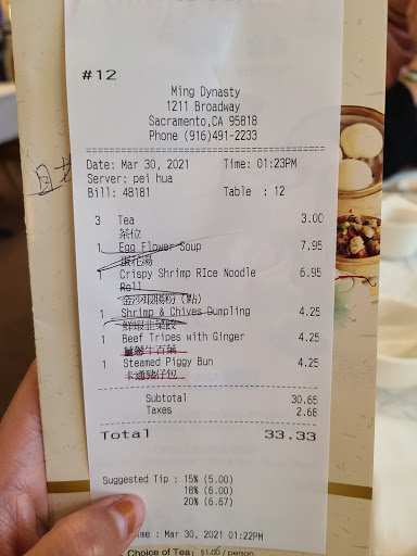 The food here is always fresh and good because the owners also run a grocery and seafood store. The dim sum is great, they have the basics and usually something more interesting like shrimp balls covered in sticky rice, mashed taro and meat, buns stuffed with sweet rice. Sometimes theyre a little short staffed. The prices are reasonable. Favorites besides dim sum: Shrimp Yee Mein - chewy noodles with nice big shrimp, yellow chive and strawhead mushroom Short Ribs with Black Pepper sauce = tender enough for my toddler to eat (theres a bit of gristle around the rib bone, but thats how short ribs are, like Korean Kal Bi) Peking Spare Ribs - So if were in the mood for something sweeter than the short ribs, its this. Spare rib bones are longer, so eating them is a bit messier Whatever fresh green vegetable of the day - so the owners also run a market and have some nice dark greens. Its usually written on the board next to the waiting area. Sometimes its A choy, sometimes its big pea sprouts, whatever it is theyll stir fry it and it will be tender and delicious.