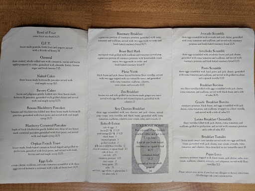 So I deleted my crummy 1-star review. I went there this morning. There are several differences now: a) they have a few meat items - including a steak and eggs dish labeled as "roast beef hash" which is not a hash at all but rather a steak, potatoes and egg dish. b) the servings are enormous. c) with the exception of the sullen, depressive tall stringy male waiter, the female staff are friendly and responsive. d) the menu is more focused - and the scrambles are terrific. good Mexican-ish dishes. There are still a few problems. a) dishes are incredibly bland - tomatillo sauce has no kick, salsa on the side was not spicy at all, pico de gallo had no chile; everything needed salt and spice, and Im not a salt kind of guy usually. b) the breakfast sausage, on the side, was VERY VERY VERY bland. c) the coffee was somewhat bitter, but maybe I ordered the wrong kind. d) there is NO FREAKING PARKING IN THE NEIGHBORHOOD. Every single spot on Saturday morning was taken - their lot was packed - we had to park 3 BLOCKS AWAY!! Every single spot around the place is weirdly permitted. You cant park 15 minutes without a local permit! Very anti-business. They need to lobby the city to fix this. Or maybe the neighbors just really, really dont want a restaurant there... Not sure why you cant park in the empty state lot across the street when its not in use but you cant. So, I think when they spice up the food a bit and get the parking figured out, this place could be awesome. Good healthy affordable (YES!) food in a nice room - pleasant outdoor seating too - in the neighborhood. Yum! I look forward to giving them 4 or 5 stars next time! Also - note - CASH OR CHECKS ONLY. NO CREDIT CARDS! Dunno whats up with that, kind of weird. Great with kids too - there were plenty there - they have lots of high chairs and are very friendly to kids/babies.