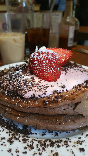 Do not come here on a weekend for brunch unless you want to wait an hour or so. They dont take reservations, and there was about 20 people waiting to be seated. The food was good, but nothing to die for. I ordered the Strawberry Cheesecake Pancakes. I would think something like this would be sweet and probably wouldnt require much syrup, if any. However, the stuffed pancakes, although good, werent that flavorful. Id stick with just the "naked cakes." I also got a side of bacon, which was delightful; crispy and delicious, not under-cooked and chewy.