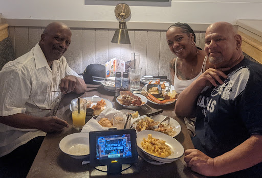 My son took my husband and I out for Father s Day. While we were waiting to be seated, we observed the bar manager, Amber (I think), take a lobster from the tank and let the kids, who were waiting, touch the lobster and she answered their questions. This went on for Abbott 20 minutes. Our server was Adrienne. She was fantastic! She was attentive, especially keeping our drinks filled. Adrienne was there with refills before e had time to ask. She was friendly and knew the answers to questions we had about the menu. We felt she was a great example of excellent customer service. The caprese salad was delicious, the cheesy biscuits were warm and delicious. The coconut shrimp was not overcooked. Thanks for a great experience Adrienne.