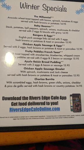 Being a local resident of the neighborhood since 1978, I was thrilled when Rivers Edge opened and have eaten there a good number of times over the years. I love the ease of location, parking and ambiance. It has been a great addition to the neighborhood. However, I have sadly found myself rejecting coming back over and over, opting to go elsewhere for breakfast. As we tend to eat breakfast out often, I am sorry to feel disappointment over the expense, that the menu doesnt justify. Now having recently become a senior on a fixed income, consideration of a meaningful discount that would encourage seniors to make it a special destination for breakfast, etc, would be welcomed. Sorry about the down note. We would like to make your restaurant a real consideration again. Happy holidays, B Kaplan