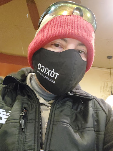 so, the parking is convenient and you have some hopes. you enter the dim fogged hall. you think you are in a cheap smoking bar.. then, after youre able to focus in a darkness, you realize that nobody is smoking. the heavy air is coming from the kitchen, and you realize they are using a wood oven. it feels like no air, no ventilation. you are hesitating, but smiling waitress invites you to proceed. you sit and order. the staff is nice. the coffee is fast. the cup is terrible. greasy and slippery in your hand. the napkin helps. the visual properties of the cup are hard to describe due to darkness. you start having regrets of ordering food, imagining whats going on inside the kitchen.. 15 minutes with dirty cup, napkin and looking around. the pizza is not bad at all. not fascinating, but good. the size is bigger than you expect. good cheese, good vegetables, somewhat dry chicken, little bigger external dough crust you dont eat. friends, lets cook and eat at home. youll live longer and happier. in worse case - order. in the catastrophic case - go out.