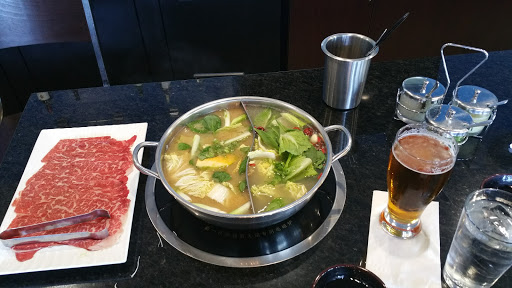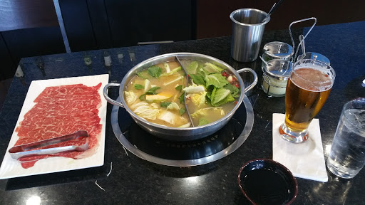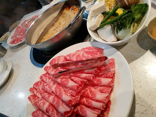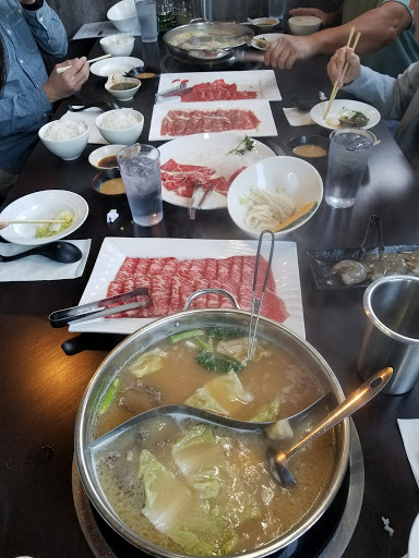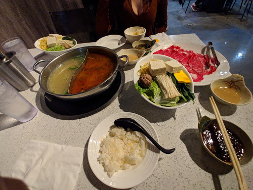 Nice hot pot places. You pick from a variety of broths, order meat and veggie packages or separates and dip and eat. The prices do add up quickly and it is not AYCE. Meat quality is good but they slice it super thin.