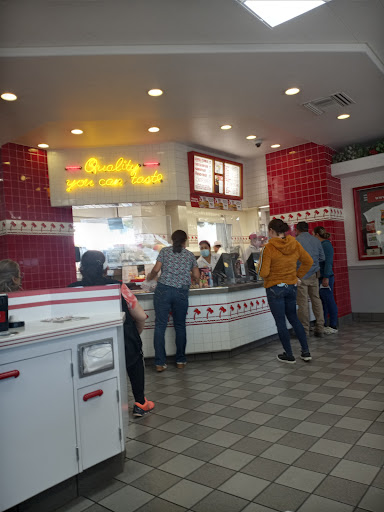This is review 2 of 3. I think Ive been to every In-n-out in the area. This is the only place Ill eat. What can I say about In-n-out: Best fast food burger. Ever. I am a burger man and this is a high honor. The meat is juicy and salty and all of their ingredients are fresh and not frozen. You even see the guys cutting the potatoes. Now, you ever seen that at any other fast food joint? Im a double double man myself. I like their lemonade. Most places have soda (which I dont drink) but no non-carbonated options. Their shakes are freakin awesome. I cant help but think of an outspoken friend who would claim that if you found a partner that could suck down their thick shakes that you had found a winner This In-n-out is ALWAYS crowded. Shoot, sometimes theres a line out the door (usually weekends).