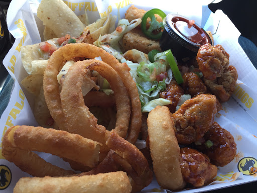 I always get my food hot and its ready for me to go. Reason why I give it 1 stars is because I come basically every Thursday for the boneless deal. Order the same thing with the same waitress "Alexis" and some how they ALWAYS charge me for wings with bones or wings with mango sauce on it. Im HIGHLY ALLERGIC TO MANGOS! WHY WOULD I ORDER IT? Heard Alexis and her co worker Tiffany laughing like its a joke that they switched my order! I asked for the manager and no 1 came out! My orders are super easy 1 large order of boneless spicy garlic and 1 large order of boneless lemon pepper. Not only that but they charge you $1.50 for a small thing of ranch! Ive never been charged for ranch at any other buffalo wild wings and if I do its never that much for 1 ranch container. Why cant buffalo wild wings hire better people?