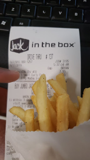 A customer cussed out the manager and an employee in the drive thru at 11 pm for not being polite. He expressed that he was a regular customer, and that they always treat him bad. Its very apparent jack in the box doesnt train its employees on Cutomer service. The menu is filled with random crap. The food is put together in a poor display. They should just shut this san bernardino restraunt down, and open a new business with a better model and staff. The experience I had while in the drive thru ruined my meal. The guy at the window acted like nothing happened. I work in the fast food business, and have only came across this problem in poorly managed businesses. do not eat here, spend the extra buck and get a quality meal.