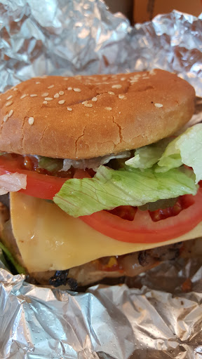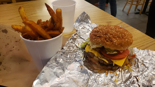 Five Guys quality food shoehorned into a tiny shopping mall food court space. Music was louder than I liked; suspect Im older than the average diner here. Fancy 200-flavor drink machines that dont have Dr. Pepper like they do at the Five Guys where I normally eat. Good enough stop for the gap between a transcontinental flight and a two-hour drive uphill.