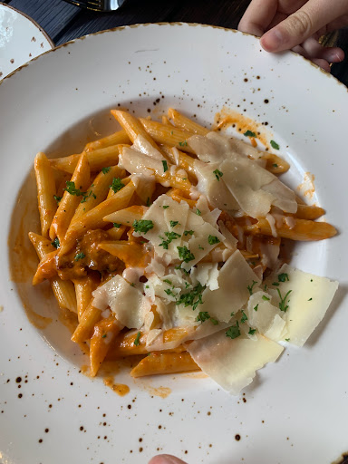 Good quality food, attentive service. We had pastas and a steak panini. Steak was great quality, made to order. They have interesting-tasting dipping sauce for the fries made from Islamabad olives.