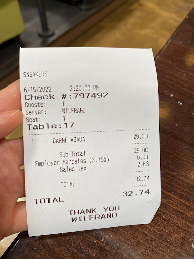 There is no excuse for a $12.50 hamburger to be made with a frozen patty... Sneakers used to be pretty good, but now the food is terrible and overpriced. There are still a lot of TVs though, so its probably pretty good for watching sports.
